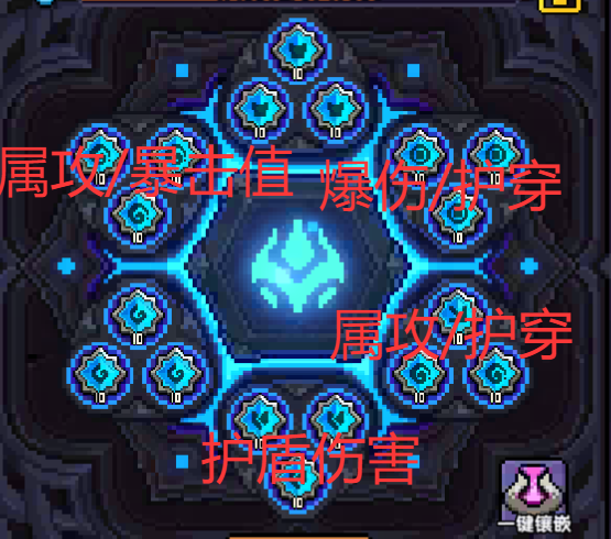 这里调试面板需要根据条件,左上角小符文选择暴击很亏,建议如果暴击值缺口不大,优先将大符文的右上角进行更换或者小屋开启buff。
