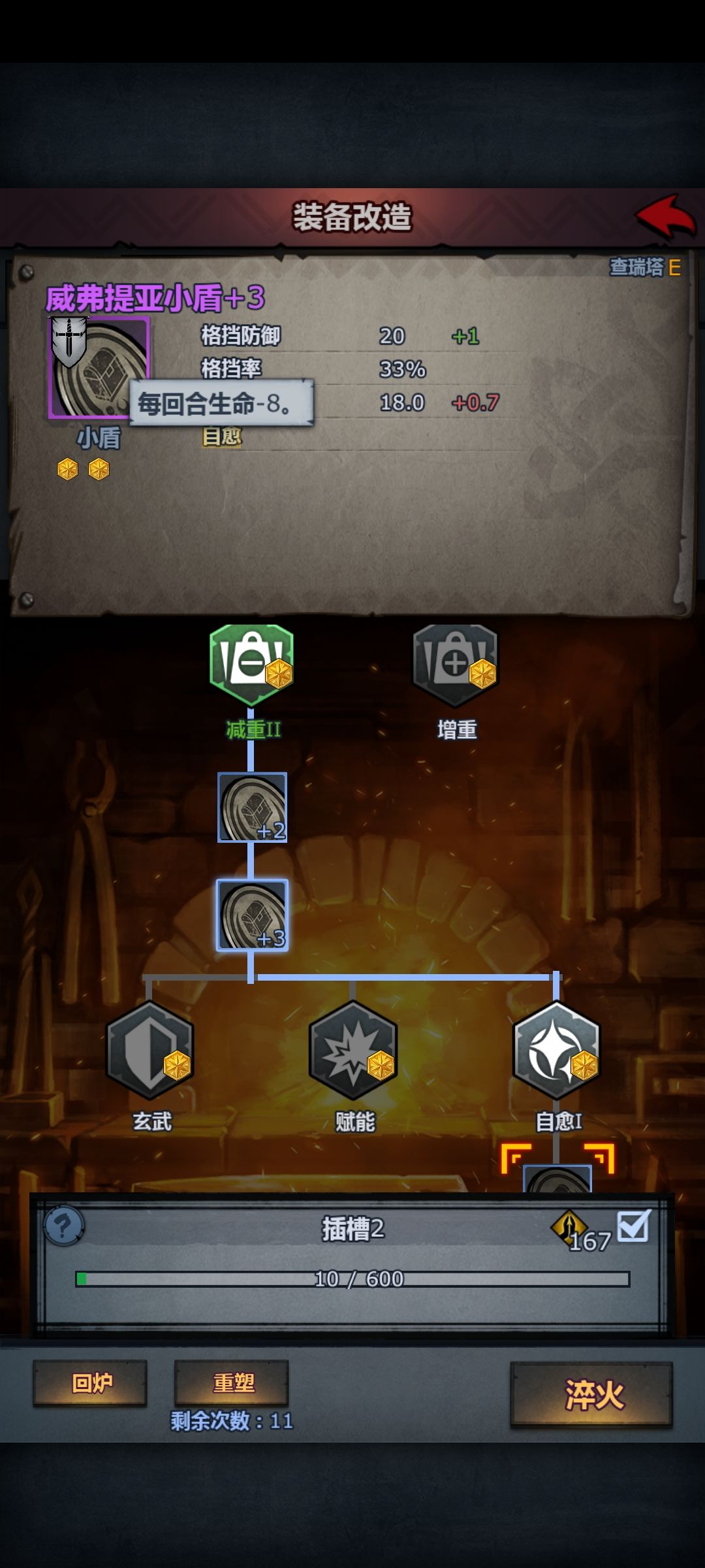 威弗提亚小盾做成传家宝,第二阶强化自愈Ⅰ就成功了,没法重塑到低等级。不是就回炉,然后给家族内的一级成员用就行