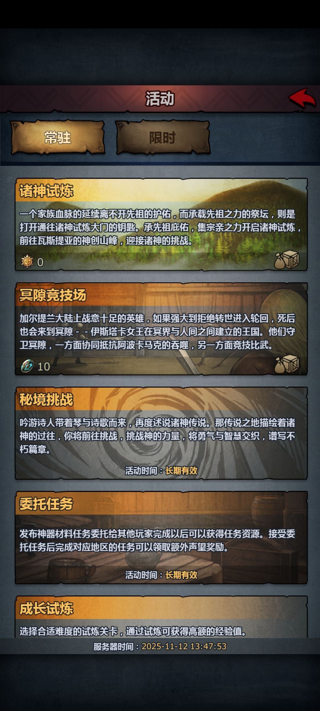 日常的活动基本就这么几个,每周的冥隙竞技场,诸神试炼加个卷土。平时攒的辉月星海结晶,水晶龙魂石都靠这几个慢慢攒。