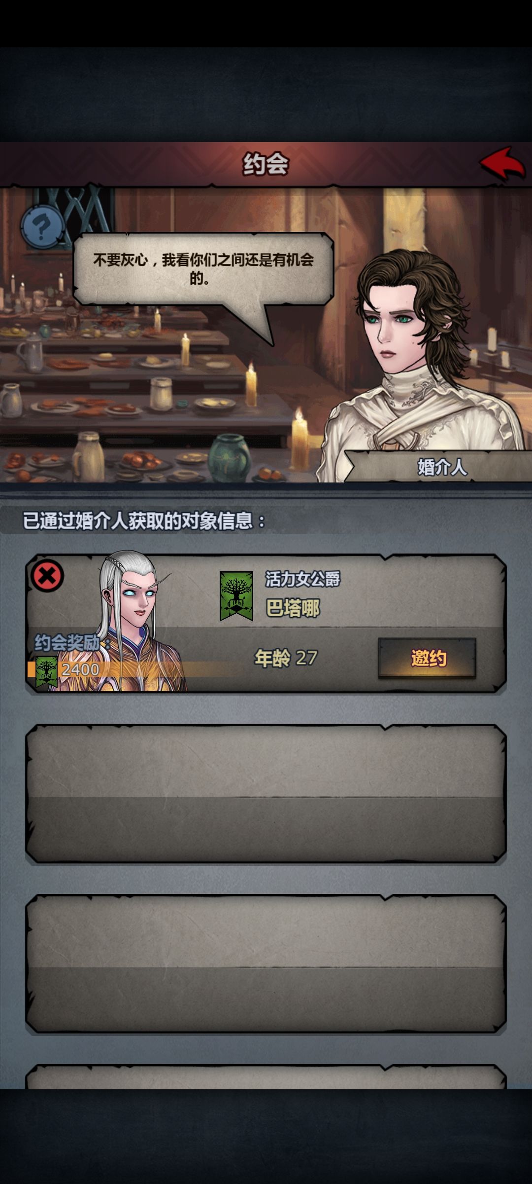 后期:公爵数量多到不需要再去嫖爵位了,换掉气质,上卖弄风情(只要你不嫖爵位就是最好的结婚特)