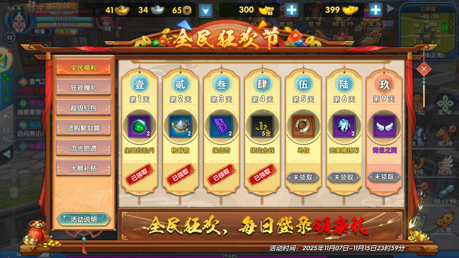 - 付费解锁:付费解锁专属档位,立即获绑定元宝980 + 绑定金钱50 金,活动结束后仍可继续累加活跃度领礼,长期收益拉满。