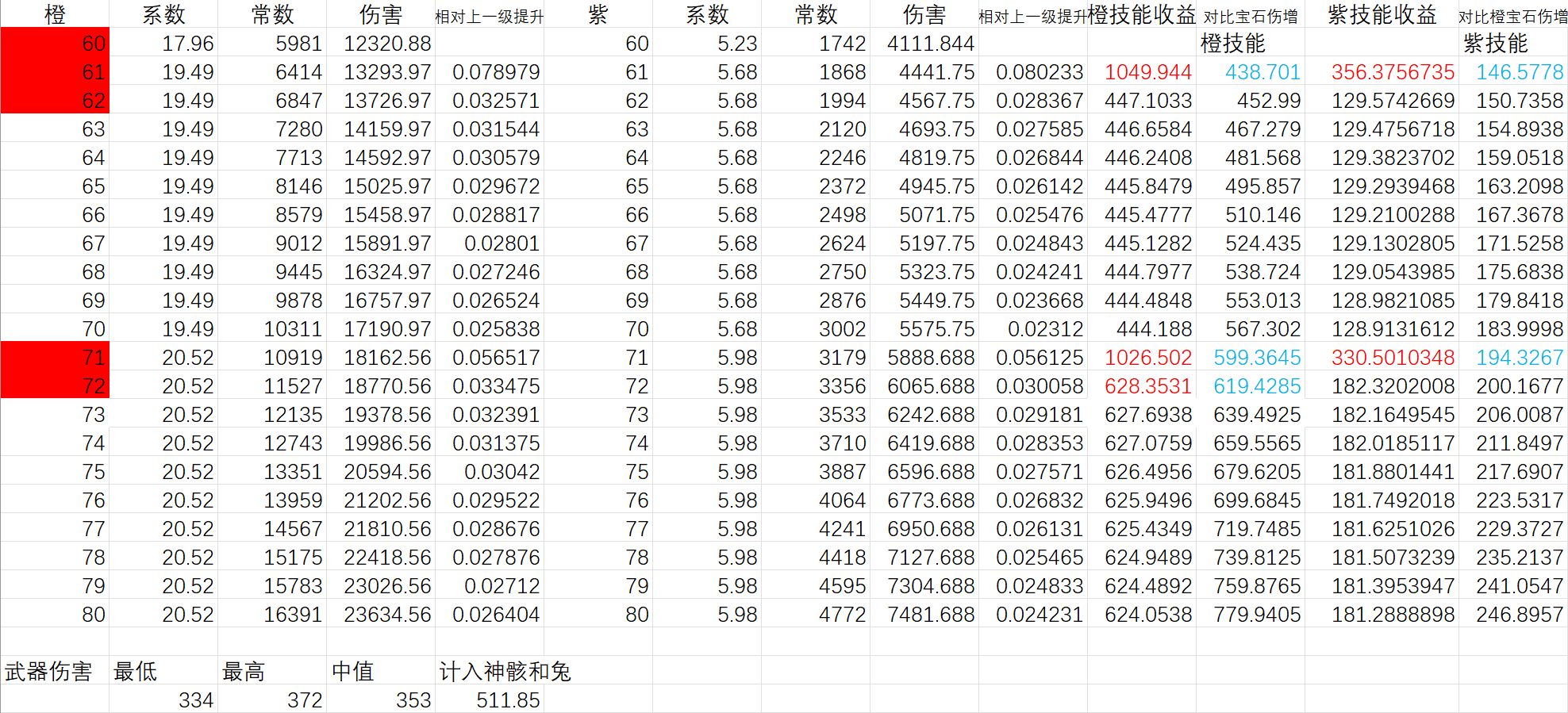 半血套:攻强系数:52.69 属攻系数:7.414 暴击系数10.929 伤害加成系数4.369