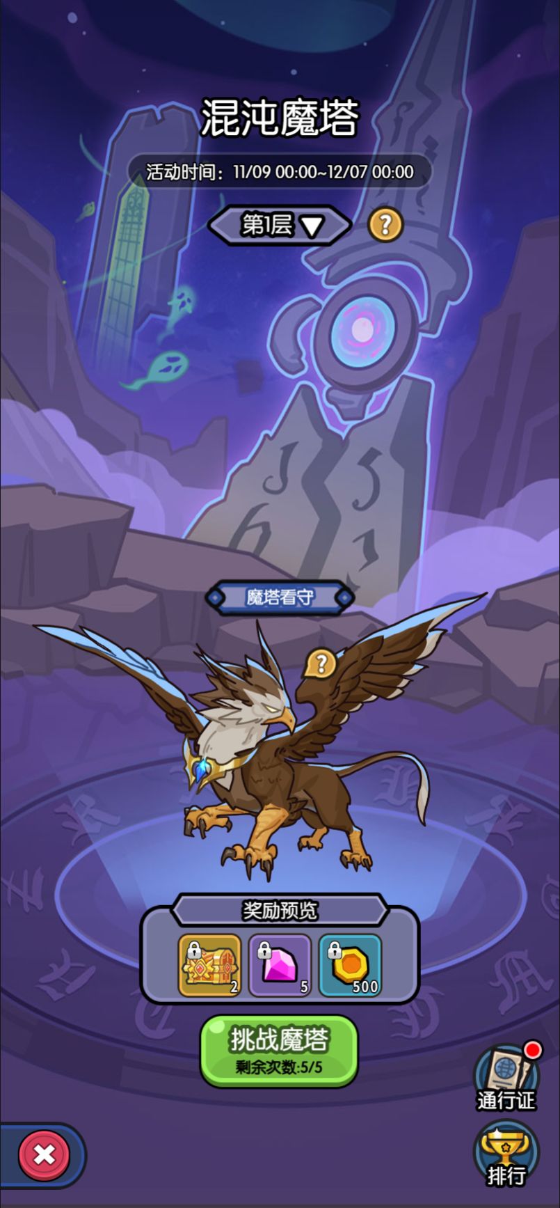 4、混沌魔塔将于11月24日零点正式开放。