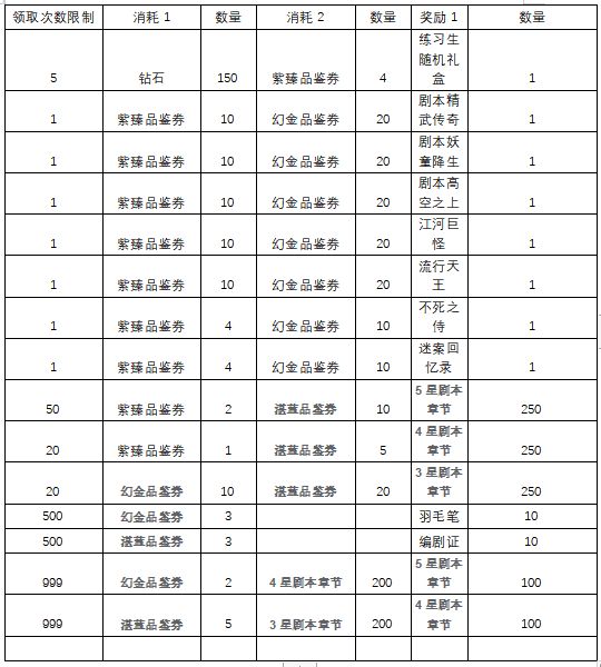 3:剧本评鉴活动这个活动期间玩家可以使用低星剧本章节进阶成5星剧本章节,也是大循环活动之一,新手玩家不开启,开启条件需要开服第8天,等级10级,账号创建第8天