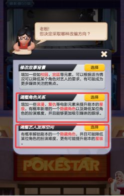 3:很多玩家会问,为什么我的5星本只能上5个艺人,为什么上面可以上6个艺人,这个就需要涉及到剧本精编,今天的正题了,明白了如何去选择剧本以后,我们就需要了解,每一个主题的类型剧本需要如何精编词条,以古装为例子,玩家可以从剧本的筛选页面去筛选自己已有的古装剧本,像古装剧本大多数都是有【浪漫】词条的,后面我们在刷古装导演词条时候就可以洗练个【古装】+【浪漫】首映20%加成出来,所以可以按照一些古装艺人技能总票去洗练第一个精编词条,例如古装的6星艺人【幂】,她的技能中是带有【宫廷】总票的,那么针对一些神本没有【宫廷】词条的我们就需要一个一个去把【宫廷】词条给洗练出来