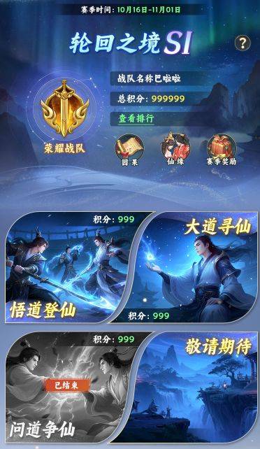 “轮回之境”设有三大试炼,每项皆可积累小队积分,冲击赛季榜单。