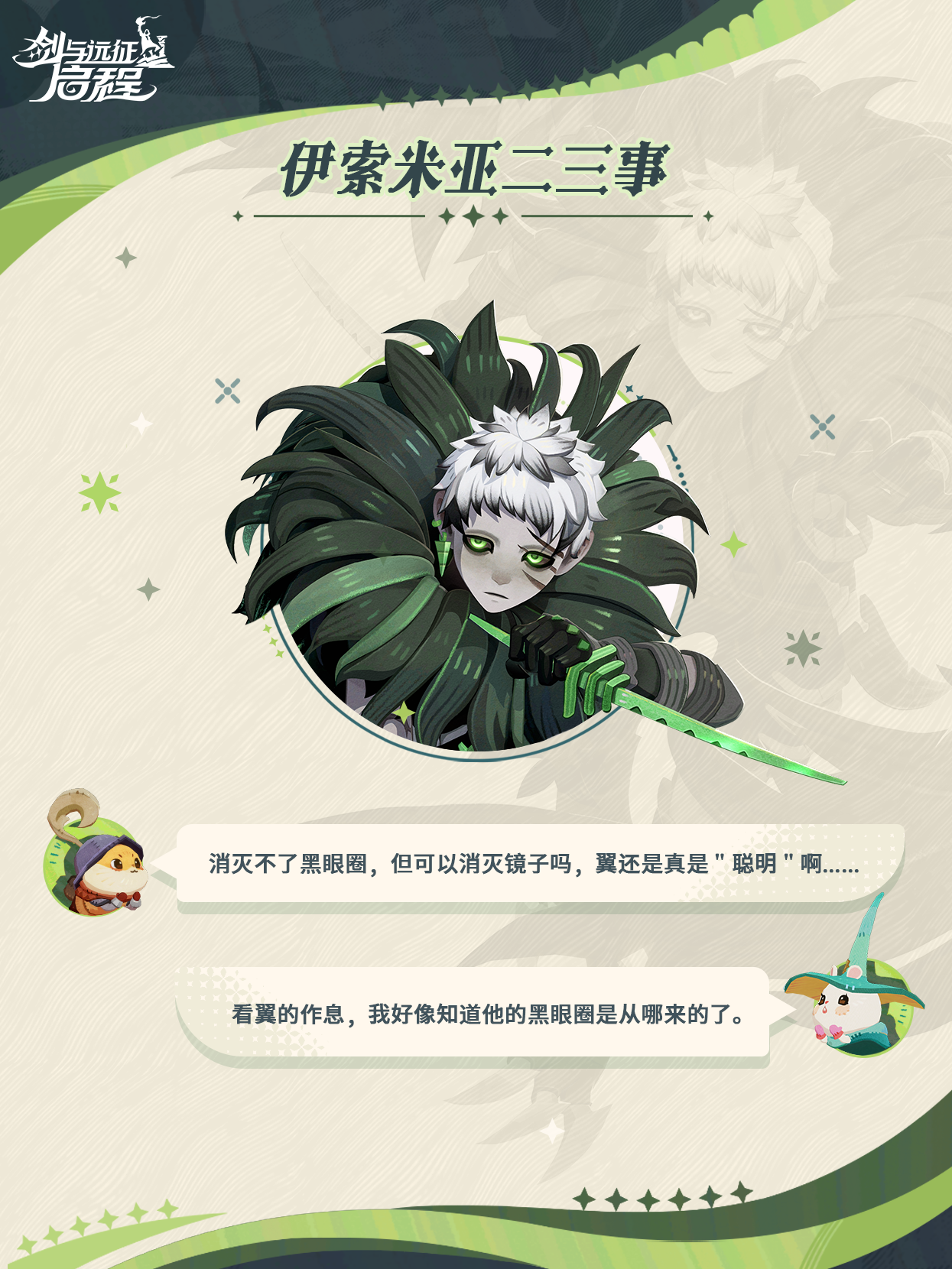 翼究竟要如何平衡任务与黑眼圈之间的矛盾呢?一起来本期《伊索米亚二三事》一探究竟吧~