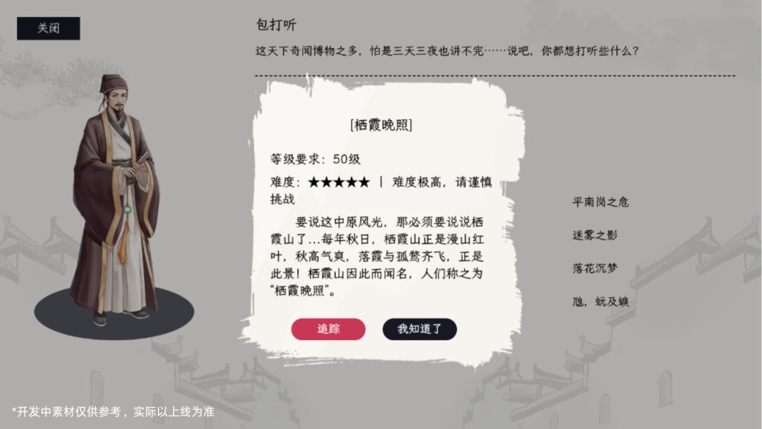 ●包打听:前往集市寻访包打听,通过与他闲聊收集线索,逐步拼凑并解锁完整完整故事线,完成后获得强力道具/装备;