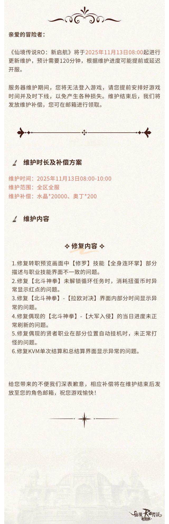 更新公告 | 11月13日更新维护公告