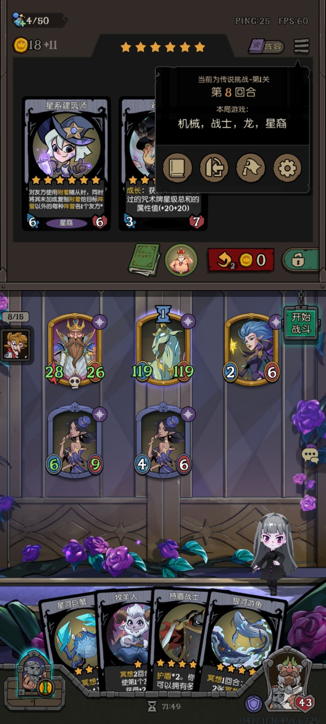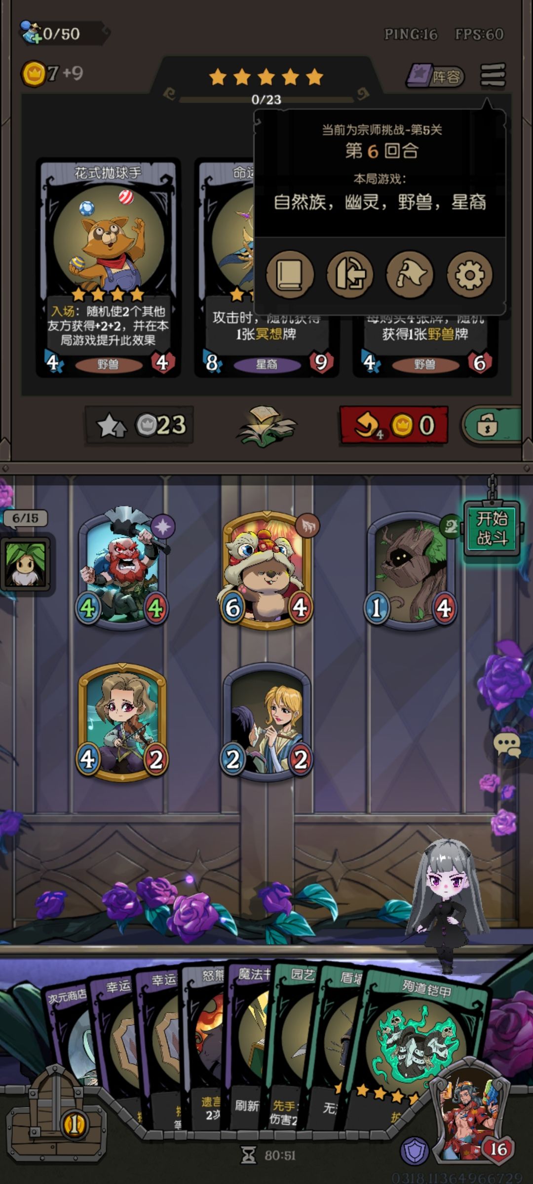 节奏上,灵狐配合4回合的3次刷新,尽量少买怪,前期卖血不会太多,配合回血天赋25血没问题。