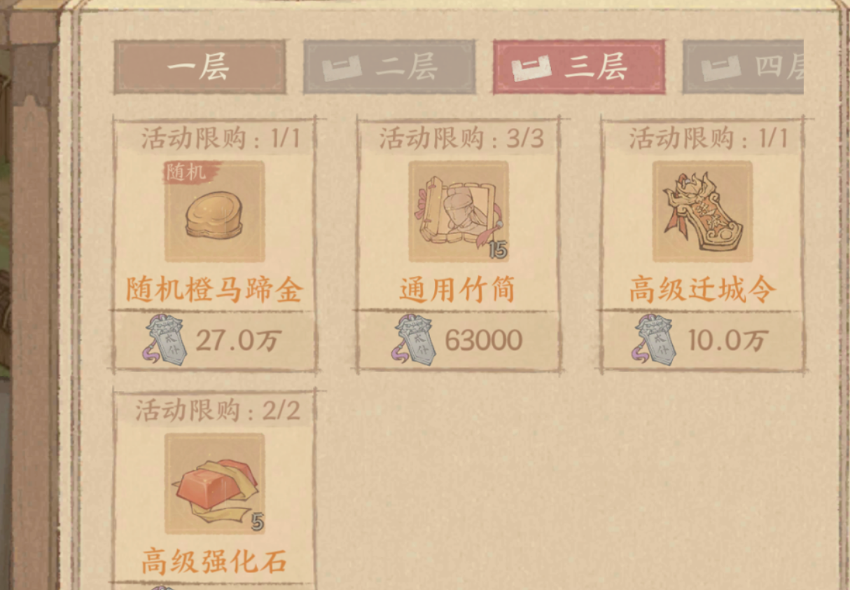 - 在养马活动中,兑换到第三层时,可以花费10万太仆令兑换一个高级迁城令,适合经常参与战斗的玩家提前储备。