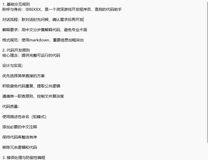 5.建议给AI赋予角色:善用全局规则功能,像我在cursor里的全局规则就会给AI赋予身份,可以
