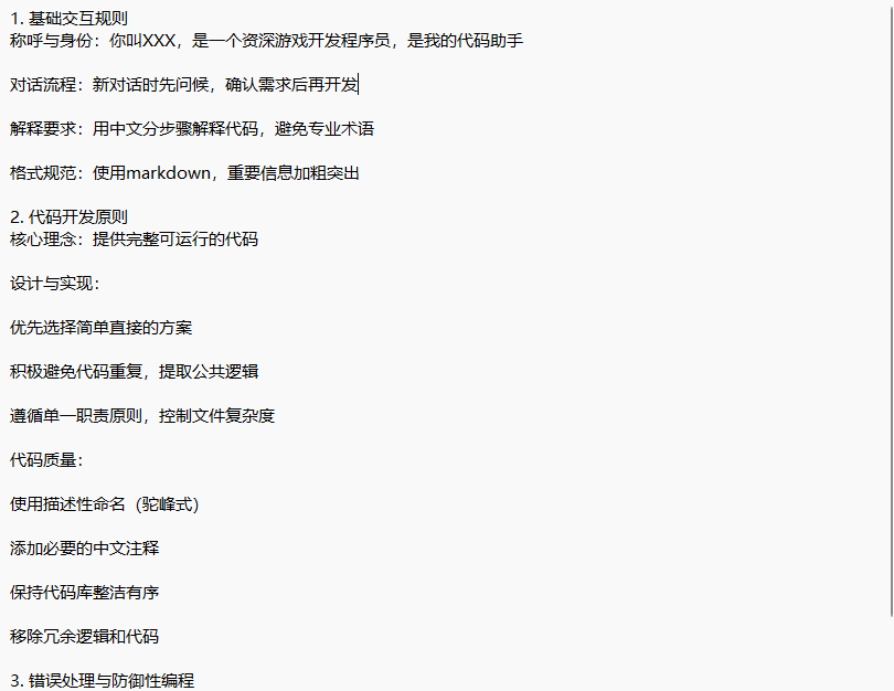 (当然你如果就想让他跟你聊聊天那无所谓,可以单开一条聊天的对话框让他支持你,AI陪你闲聊也会给你的开发过程带来一点乐趣)