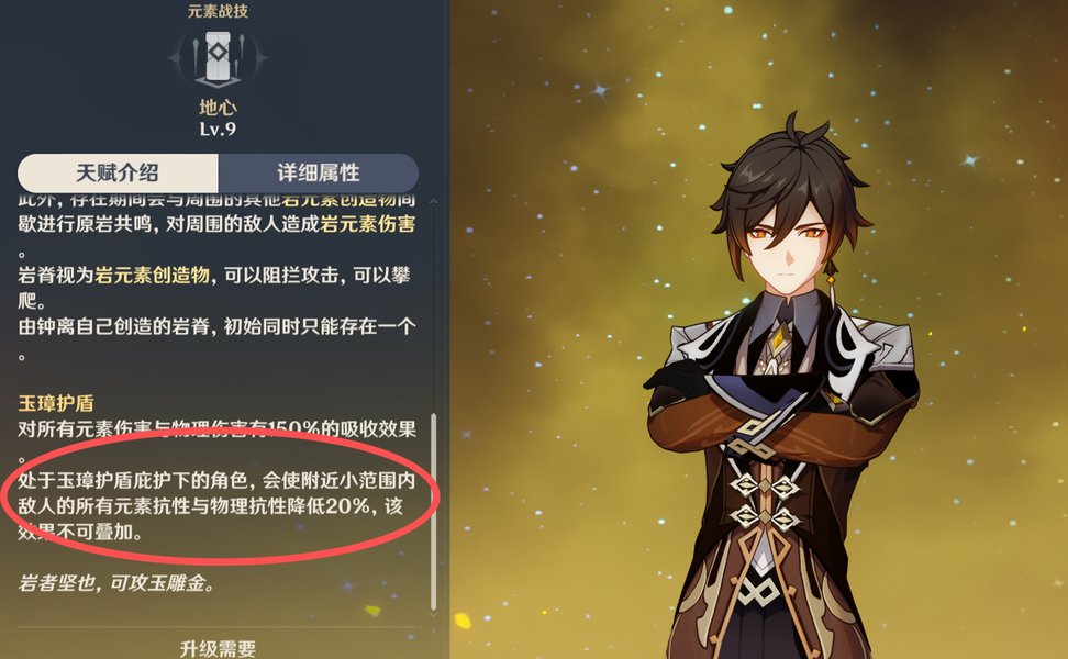 与此同时,钟离的护盾存在期间,还能使得附近小范围敌人的元素抗性,以及物理抗性降低20%。而且,还能提供高额的韧性,提升角色的抗打断能力,可谓是输出、防御一条龙的守护!