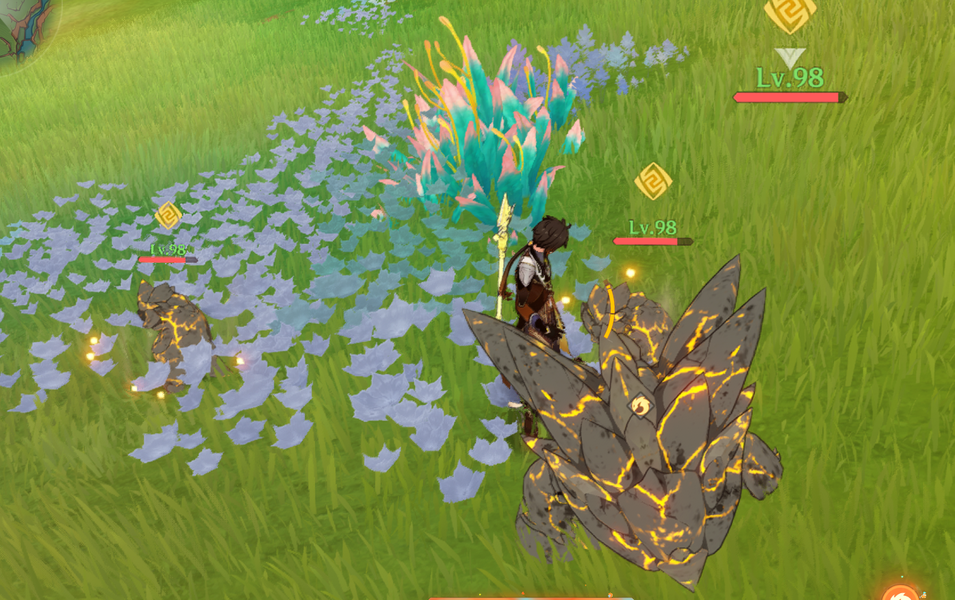 记得开服那会之前比较火的岩伤共鸣玩法,就是利用造物铺满场地,自动打怪。