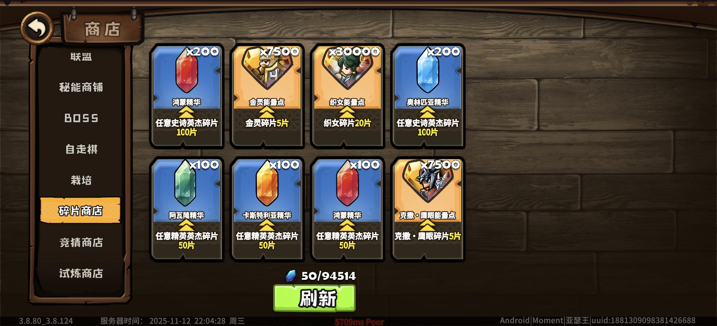刷新碎片商店,能出一堆精华也不出券