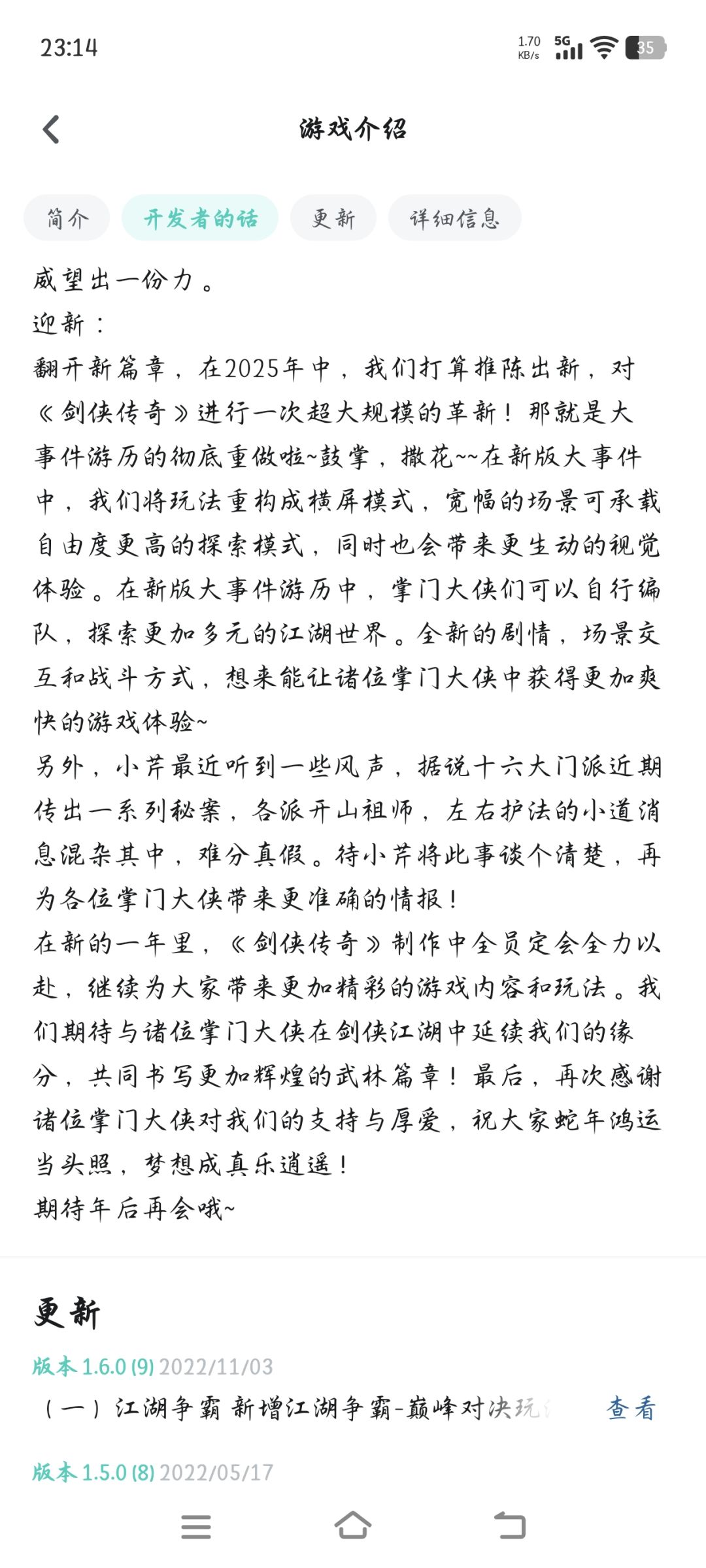 最后的最后,还是希望策划能听取玩家意见,Tap tap论坛的活动我可以看见你们在收集玩家的意见和想法,但我希望你们能将这些变为现实,祝剑侠传奇屹立不倒走向辉煌!