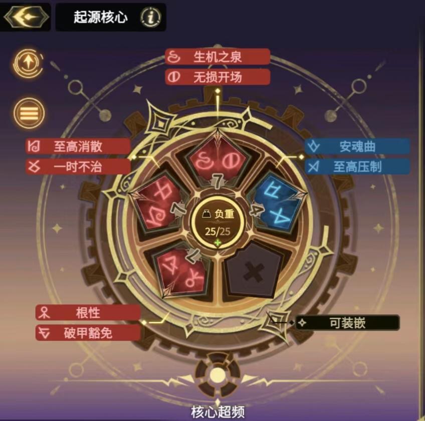 无损开局、破甲豁免、一时不治、生机之泉、根性 这几个必备且品质越高越好,其次是至高压制、大势化小