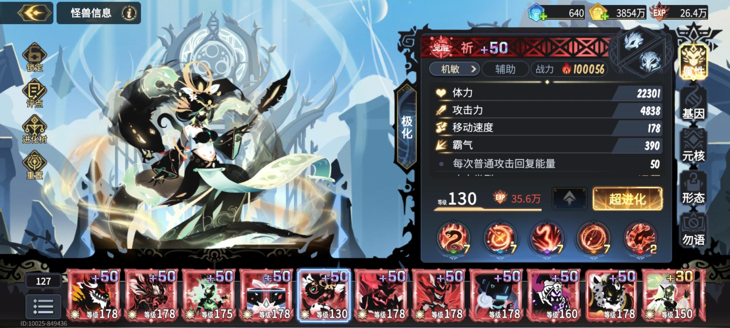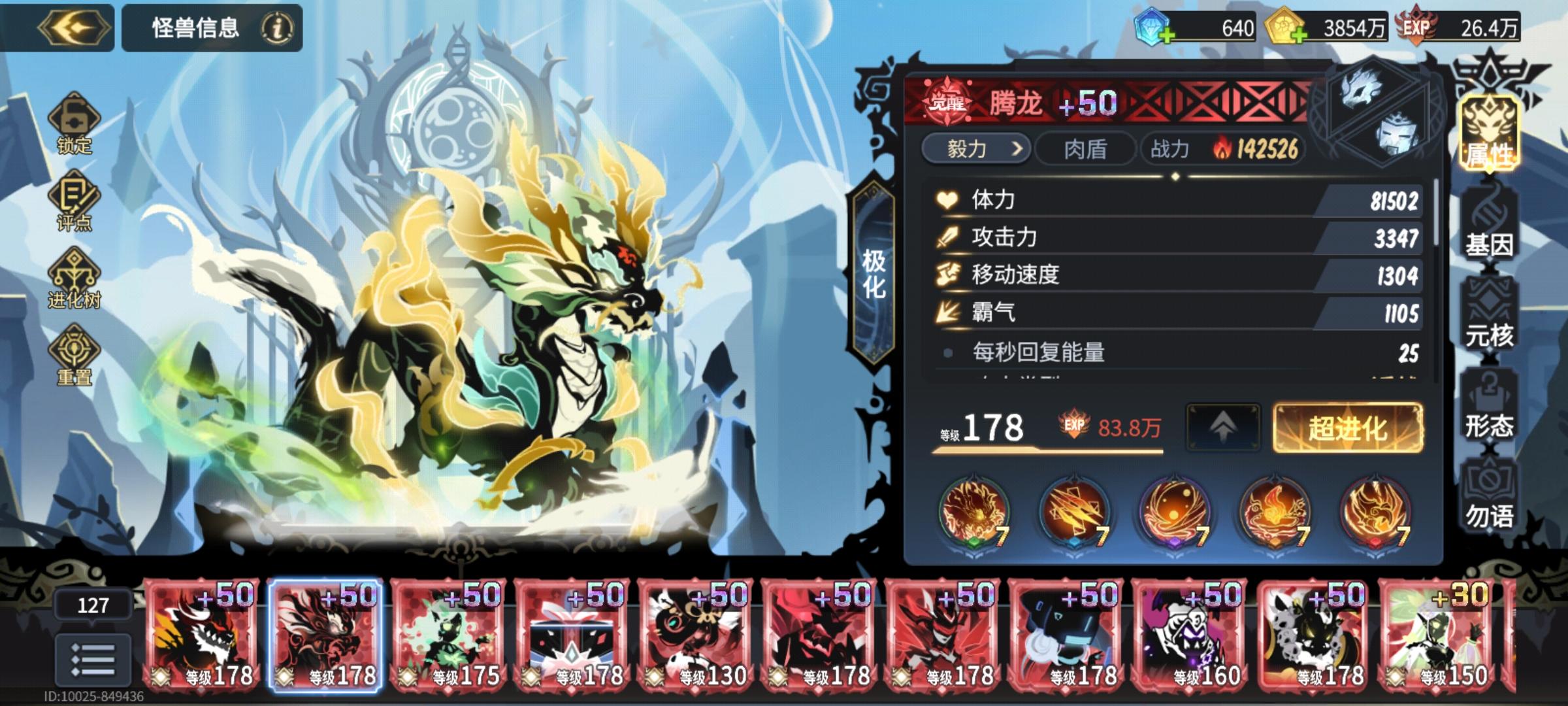 ②基因:大基因50移速或50霸气(根据个人情况微调)小基因120体力