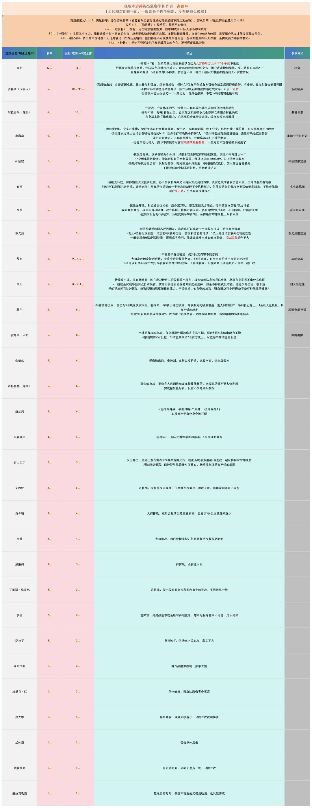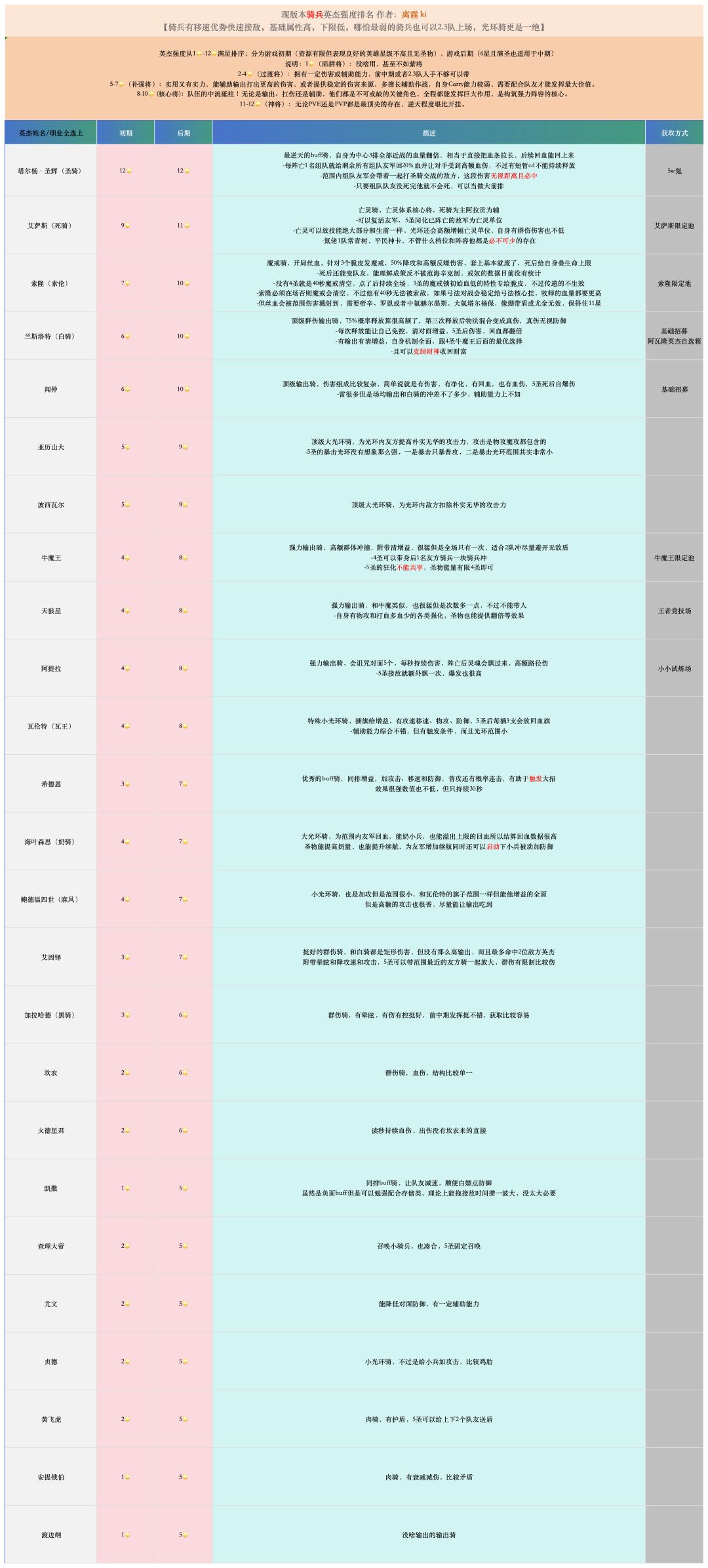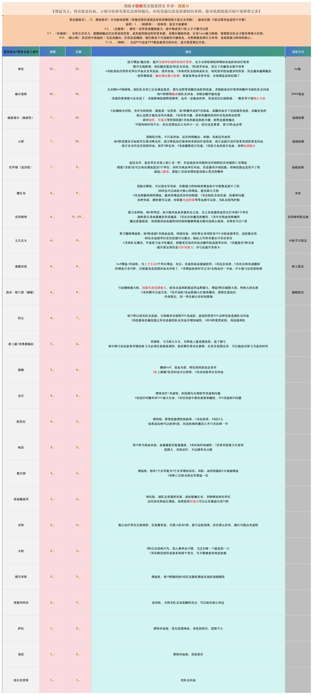 综合评定,星级共通,星数越高则上限越高,目前弓法是最新的,其余职业为去年11月版本,欢迎大家评论交流。