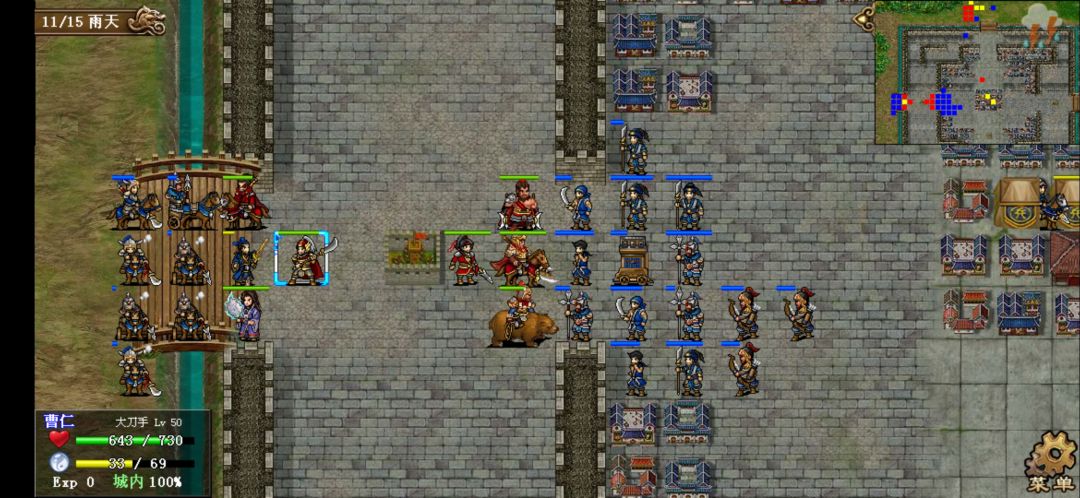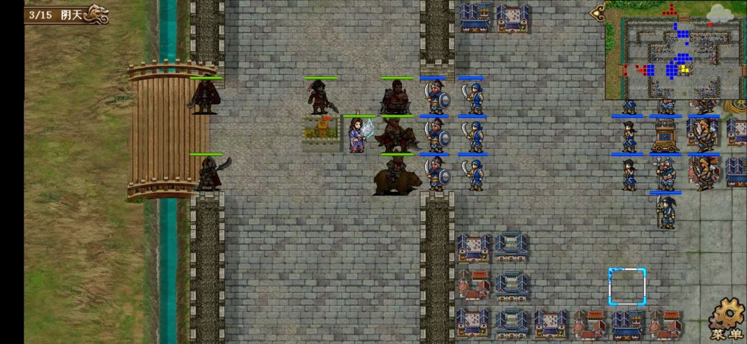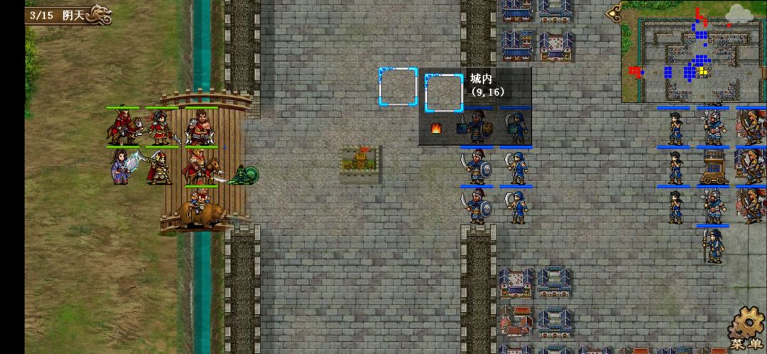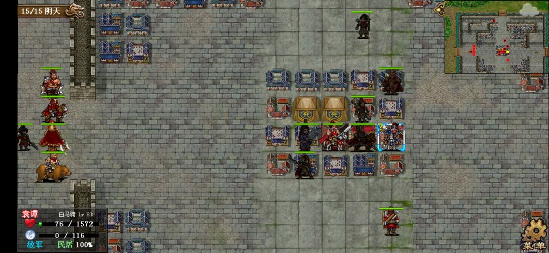 北门集火打掉右侧步兵,许褚站左侧回合外反伤,二回合初状态如下