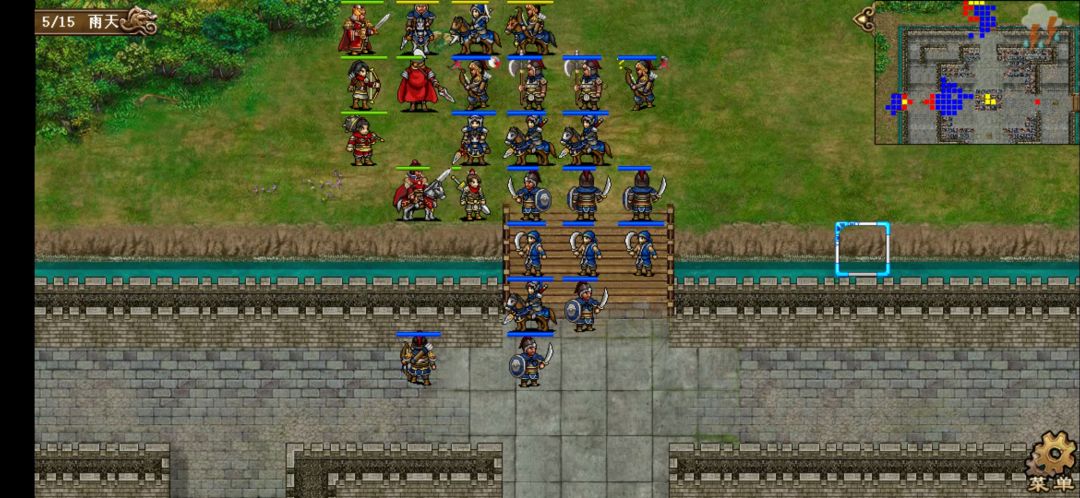 北门于禁上移降防审配,张辽围攻带动张郃,许褚再来一下直接送走,清掉北路最大的麻烦。李典自己磕药补满血,曹老板两个火阵后站李典身旁提供光环,回合外李典要承受5个敌兵的攻击和2山贼的🔥,如果不幸被两个双爆带走了请重新来过……