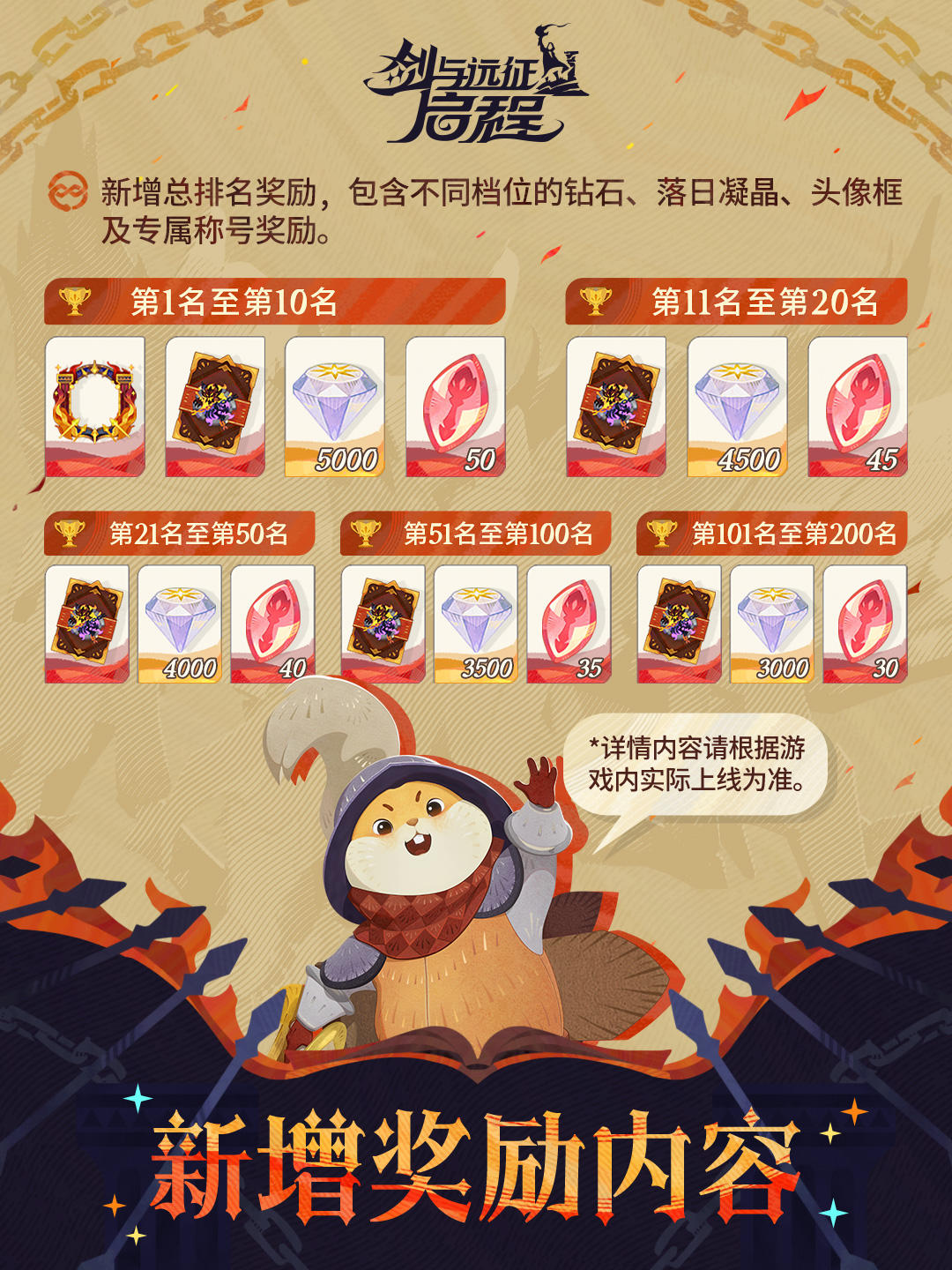 参与活动即可获得钻石、落日凝晶、头像框及专属称号等奖励~