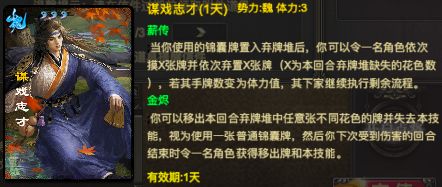 戏志才是曹魏古早时期的登场人物,他被荀彧举荐,出任曹操的谋士,但是不幸早卒,让曹操十分痛心。早在2016年刚出的时候,戏志才就有强力忠臣的称号,并且他的很多表情包时常在各种场合迫害他的继任者郭嘉。不过现在的界版郭嘉在各种模式仍然有着不错的发挥,也算是争了口气。现在的谋戏志才有着不错的技能体验,简单容易上手,和张芝、吴苋、彭羕、张华等人都有着不错的技能效果,几局实战就可以熟悉基本操作并发挥出基础实力,当然另一方面也很容易形成公式化操作,需要在细节上做好处理,达成最优解。简单来说,谋戏志才这个武将继承了戏志才本身就有的卖血能力,作为辅助的时候提供的牌和效果也更加多样化,但代价是抗压能力有所下降。简单来说,实战对局中戏志才需要注意以下两点:1.自己使用锦囊牌之前,注意本回合弃牌堆中的花色数不要太多(推荐出牌阶段最先用锦囊,这样可以达到己方摸三张,敌方弃三张的强大效果)。