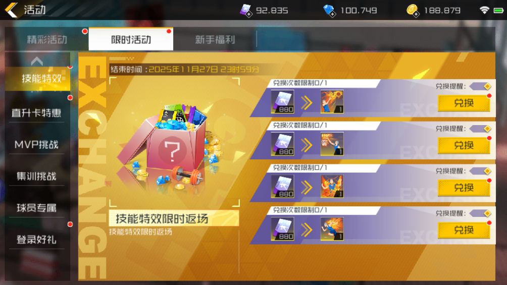回归专属:回归玩家签到即送SSR+球员自选,还可用点券超值兑换(荣耀誓约)抽奖券等资源。