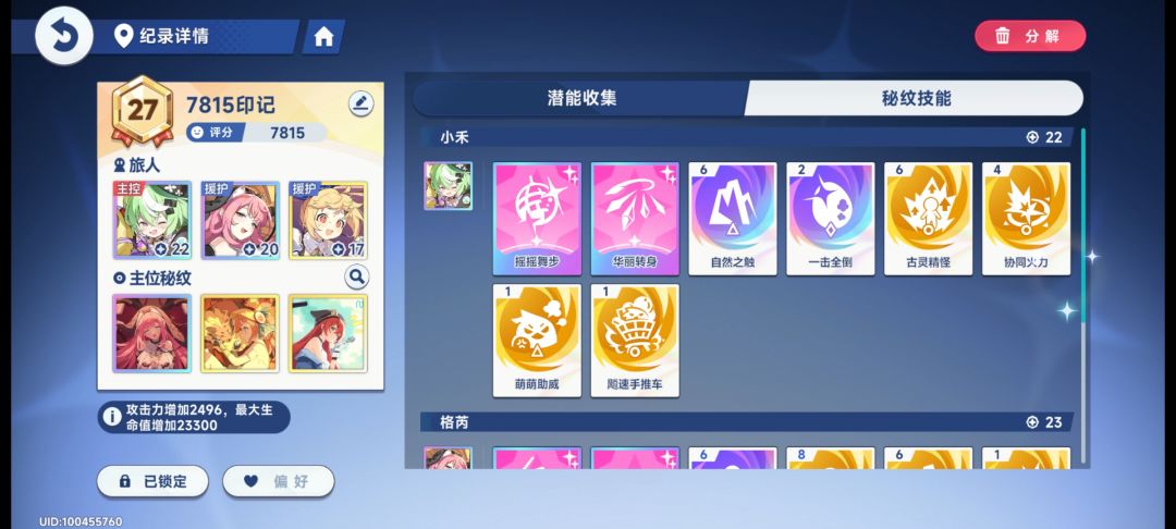 看了NGA大佬说的印记流,姑且试了下,确实比传统土队强不少,而且不需要手法,只需要躲技能并且让格瑞援护技钩到BOSS就行,可以说是最无脑的一集了,缺点是要求格瑞练度高,纹章必须得有印记伤害,而且打站桩才能这么高分,我试了下联合里的移动boss,没加成也可以拿满奖励,没光水的可以考虑下
