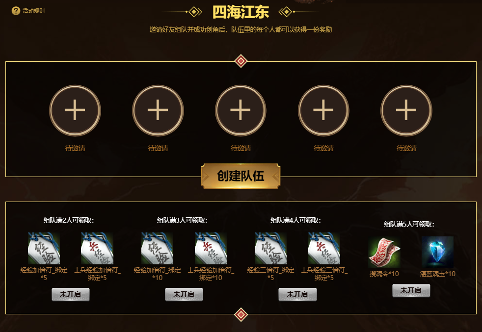 五人满编队伍,一同领取满满经验符、搜魂令和湛蓝魂玉奖励!