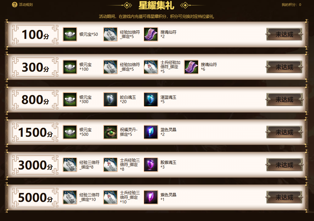 注:星耀积分获取时间为11月13日11:00-11月19日23:59:59,星耀积分使用时间为11月13日11:00-12月5日23:59:59,请主公参与“星耀集礼”活动时注意起止时间。