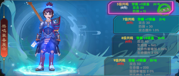 四件+5装备:攻击+20、防御+20,基础属性稳步提升;
