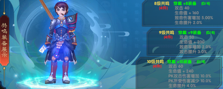 四件+10装备:攻击+60、生命+240,PK伤害+10%、PK减伤+10%、生命+4%,全属性拉满统治战场!小贴士:所有共鸣加成可同时享受,成套养成远比单件高精炼更划算!