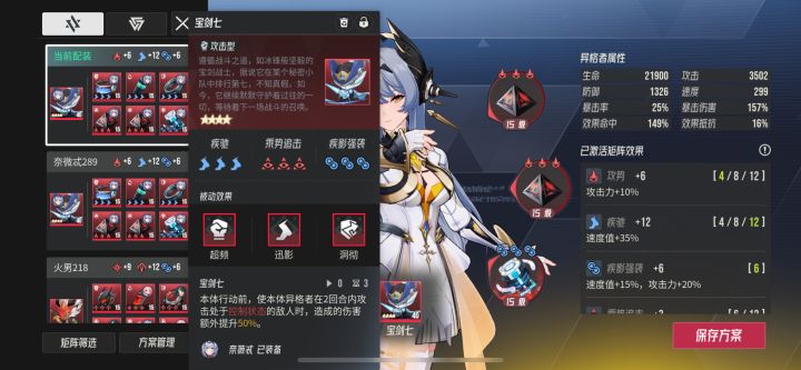 最后叠甲:也有可能是我的打开方式不对,欢迎讨论。宝剑七应该在是她能用的情况下输出最高的纸壳了,但是宝剑七矩阵又很尴尬,8个有4个都是带暴击效果的,最合适的宝剑七应该是攻势疾驰讯影,我暂时没有,后面定制一个再出一期测评看看怎么事。