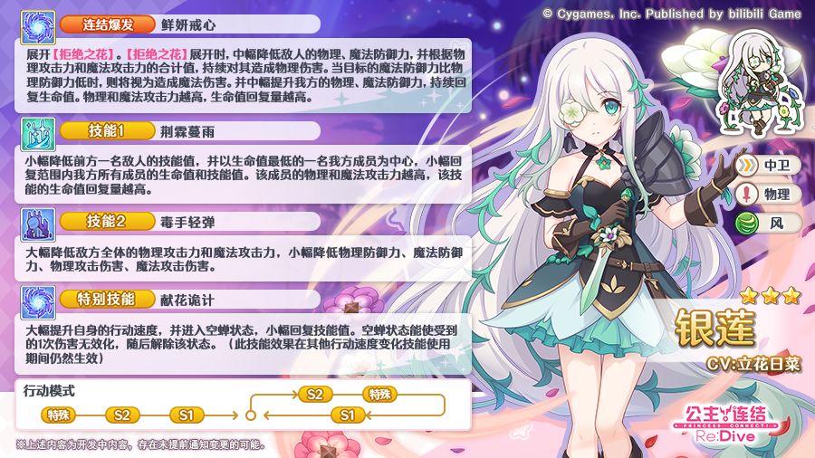 11月14日维护后,期间限定角色★3银莲(CV:立花日菜)正式登场,技能详情与行动模式公开!