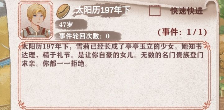 · 雪莉已经长成了亭亭玉立的少女。她知书达理,精于礼节,是让你自豪的女儿。无数的名门贵族登门求亲,你都一一拒绝。