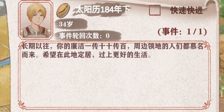 · 长期以往,你的廉洁一传十十传百,周边领地的人们都慕名而来,希望在此地定居,过上更好的生活。
