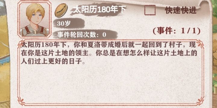 · 你和夏洛蒂成婚后就一起回到了村子,现在你是这片土地的领主。你总是在想怎么样让这片土地上的人们过上更好的日子。