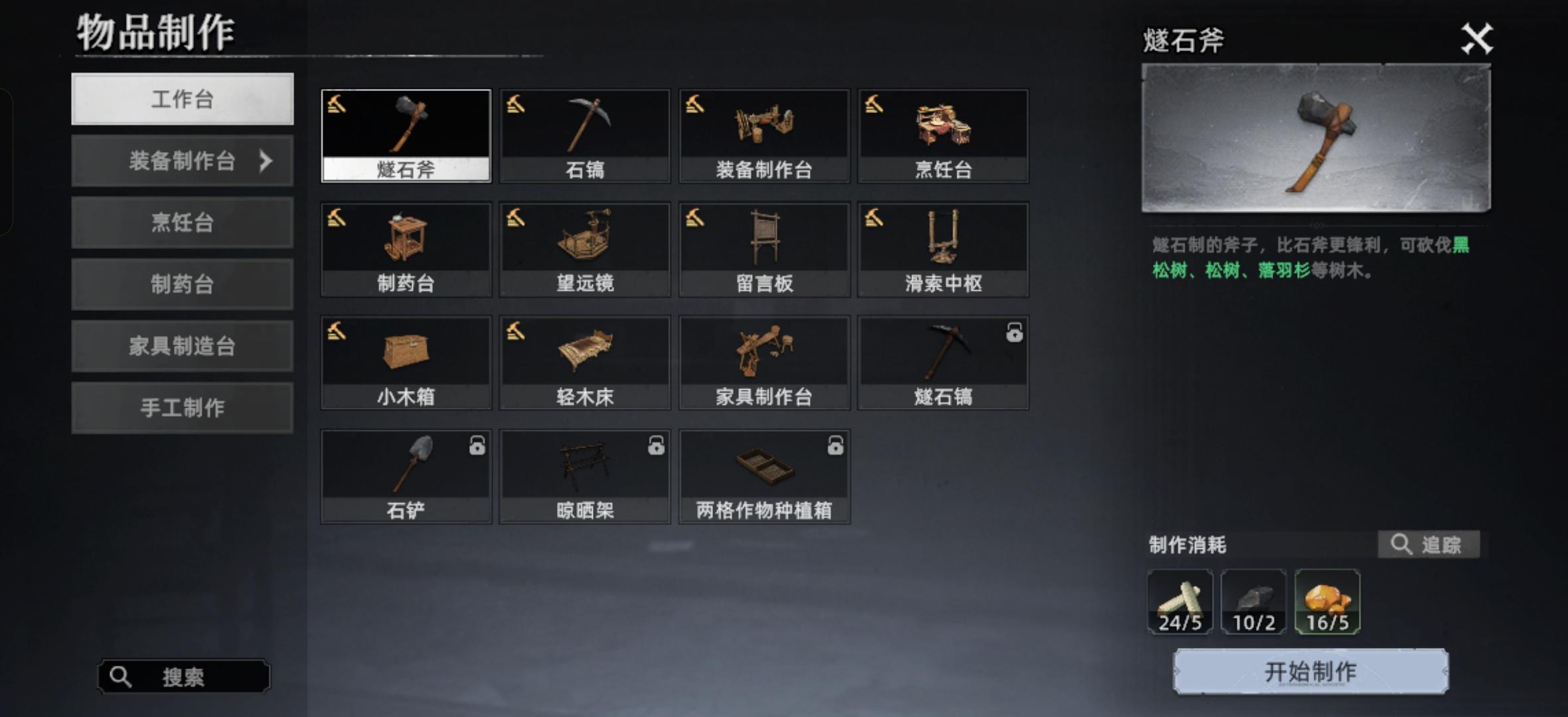 制作各种物品,前期可能会出现背包爆满的情况,记得多做1-2个小木箱存储