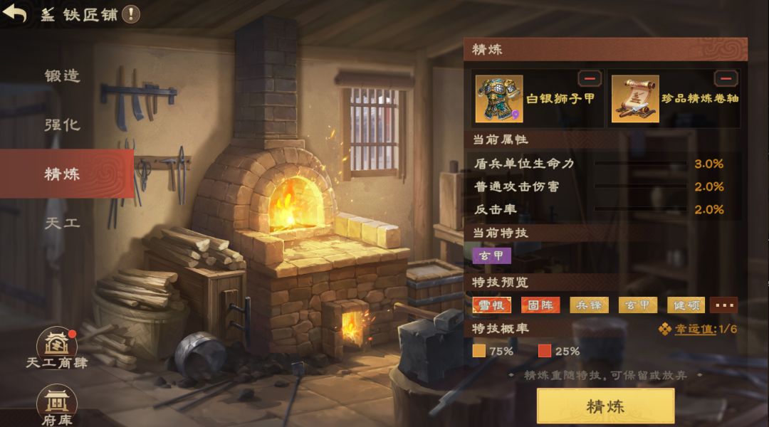 1、使用“上品精炼卷轴”和 “珍品精炼卷轴”可分别累计幸运值,幸运值满后下一次精炼将必定获得绝品特技;