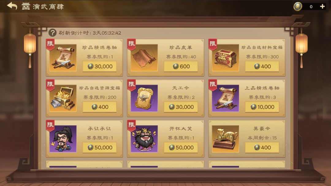 4、赛季 — “演武商肆”中将新增赛季限购商品天工令;