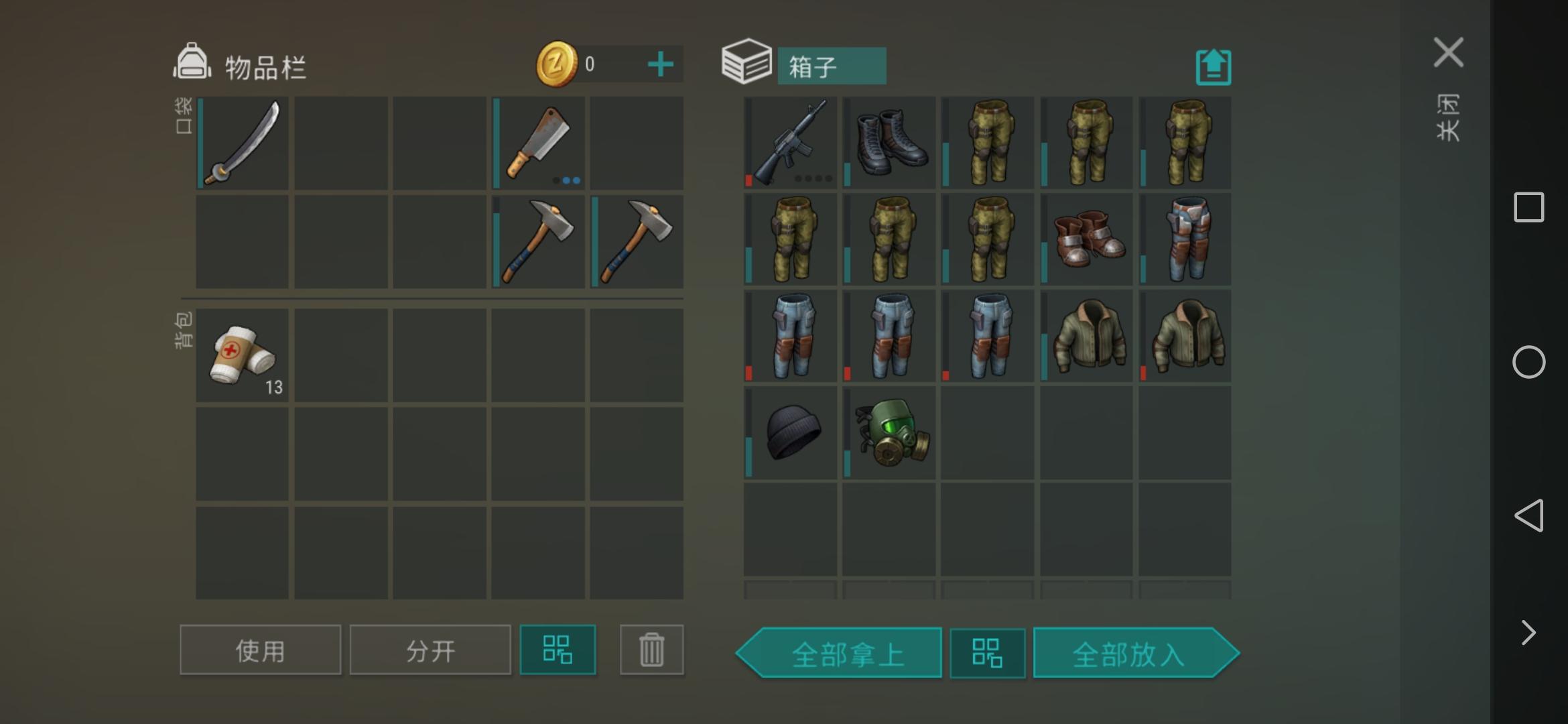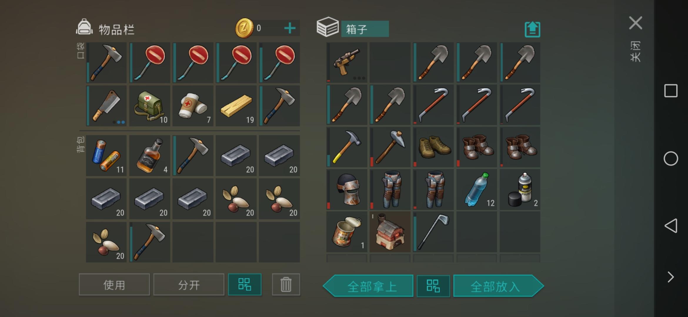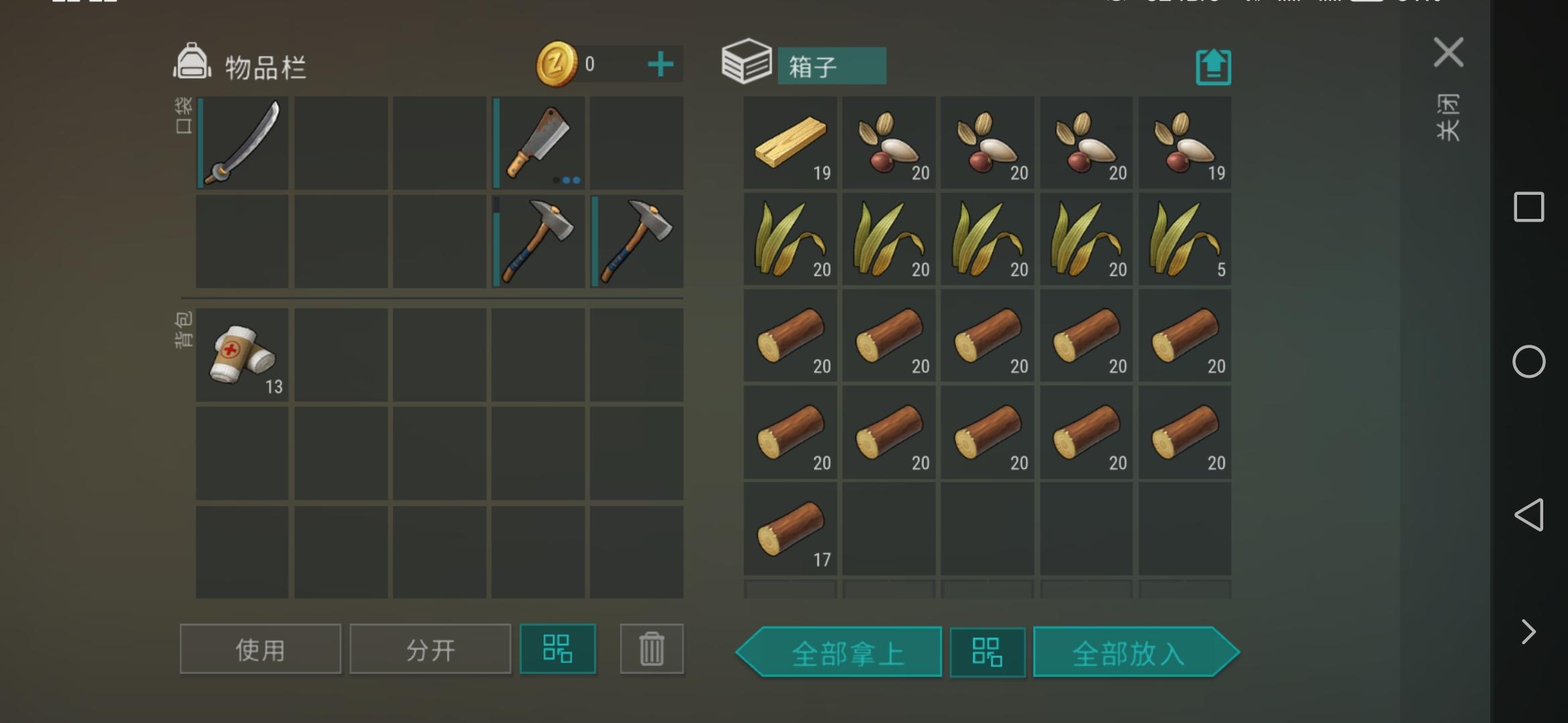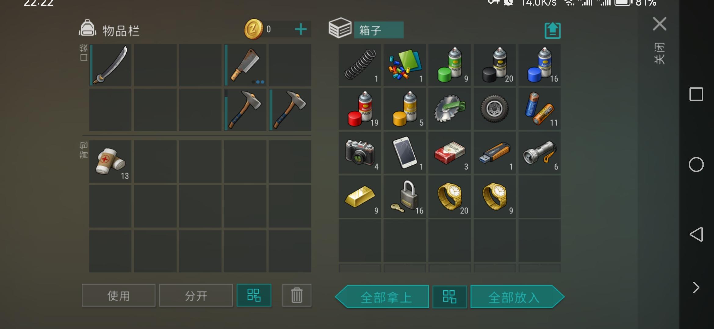 1铁斧,若干石斧。12,13箱子应该是低耐久衣服