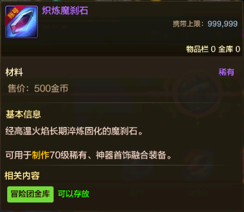 制作稀有/神器首饰融合装备的主要材料是炽练魔刹石: