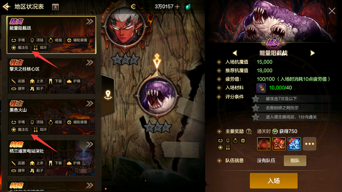 选择征讨地区后,会出现多种副本,左侧显示“特殊装备”产出的副本,可以增加这些装备部位的掉落概率,所以选择对应的副本进入也是很有必要的。