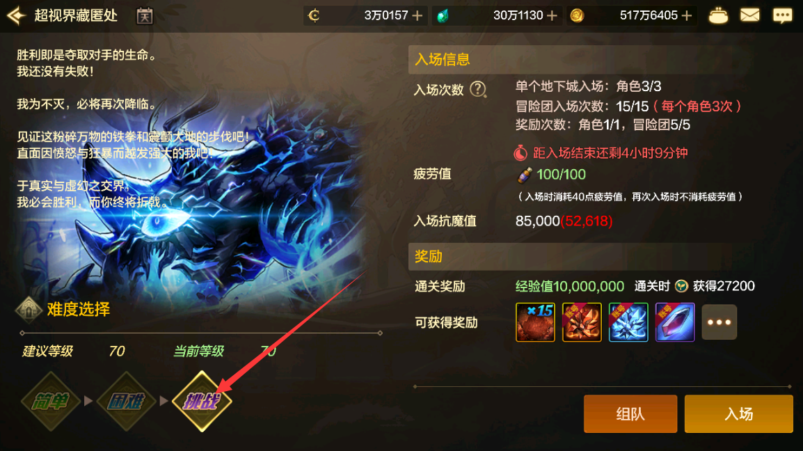 而挑战难度的新超越副本入场抗魔值门槛为85000,由于限制冒险团获得奖励次数为5次,所以若是想要开局赢在起跑线,积累5个抗魔值85000以上的角色就显得很有必要。