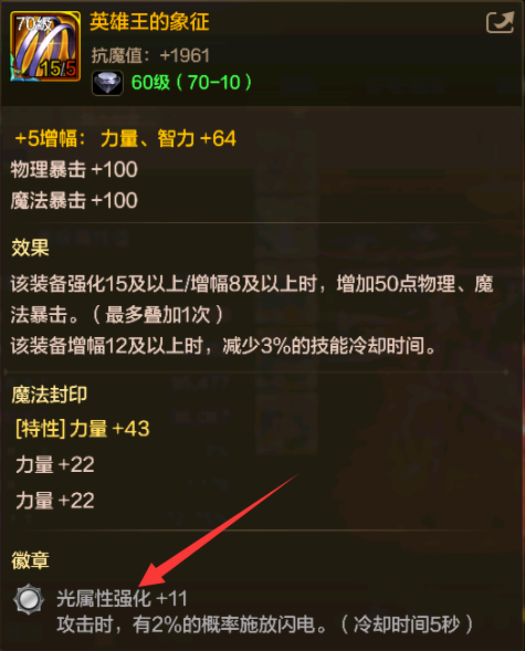 同样是镶嵌“属强白金徽章”,此时角色可镶嵌白金徽章的部位有:称号、辅助装备、魔法石和耳环共计4个,若是想要将主角色的属强白金徽章细节化,那么后续的资源集中就显得非常有必要!