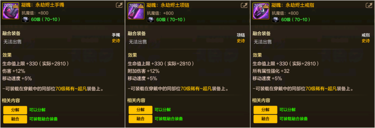 我们历经了防具融合装备的制作,所以对“融合装备”的概念一定不陌生,新版本更新后也加入了“首饰融合装备”,可用于装载手镯、项链、戒指3件首饰上面。