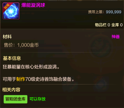 制作史诗首饰融合装备的主要材料是爆能漩涡球: