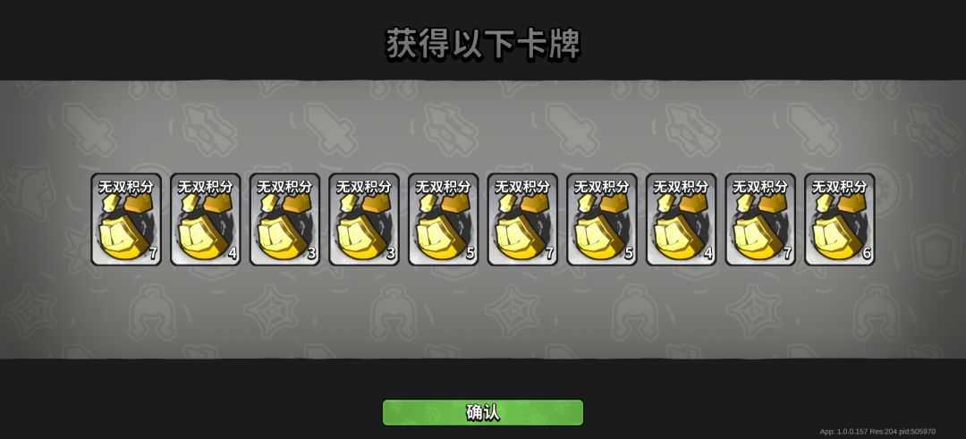 福星拉满,高层一个都没免过,基本上只有两层三层免费,遇到的好几个群友,八九十全免,基本上同样拉满的情况下节约1万以上玉璧。女巫活动大概抽了一百五六十抽,次次保底,给了一大堆的积分,就是看着积分百来个马上满150了,继续抽的,结果也只够换两个,群里有几张截图,十连抽三个女巫,同样的抽取次数,比我多五六个。😂甚至于墨染五都黑,一天开满,给了一个绝世,都是蓝天白云。最坑的是开了一局破阵之眼十,竟然还吞我绝世万象卡